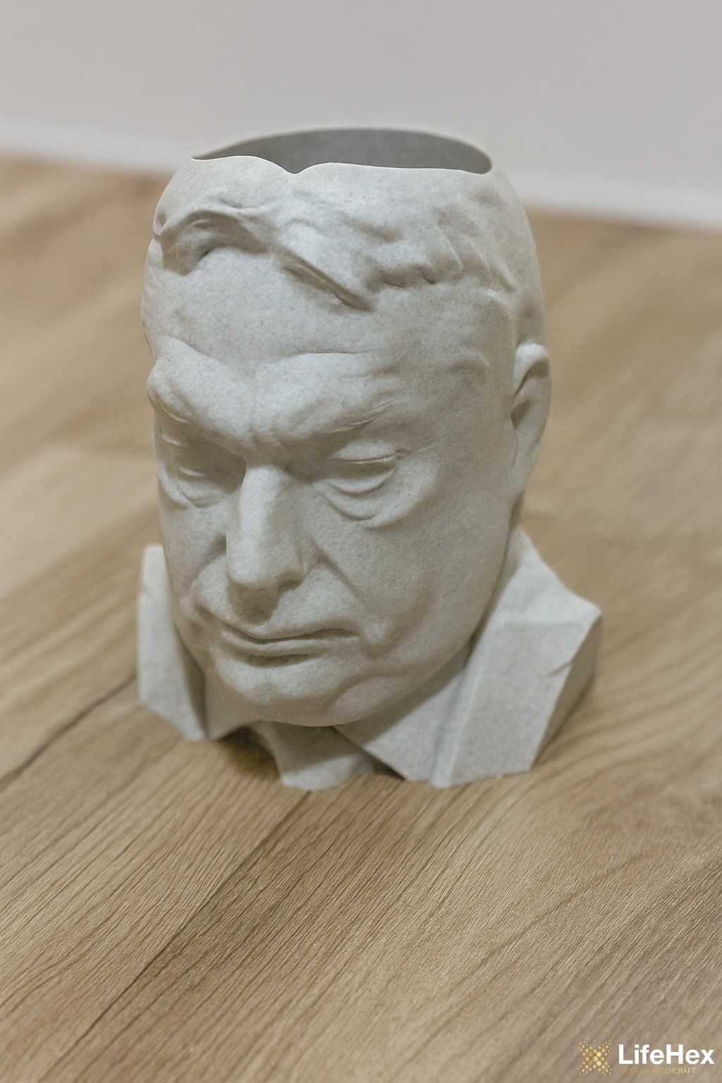 Orbán Viktor mint valóban hasznos segítő, WC-kefe tartó formájában, de tetszés szerinti tartalommal megtölthető a feje, akár chipstartóként vagy virágcserép helyett is remekül használható (kültéri használatra nem alkalmas!). Hogy szorult helyzetben is mindig melletted legyen...