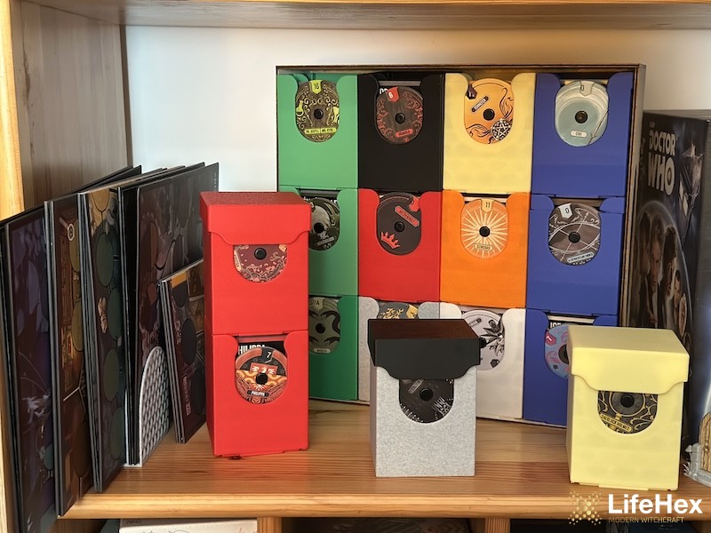 Speciális tervezésű 3D nyomtatott karaktertároló doboz az Unmatchedhez.