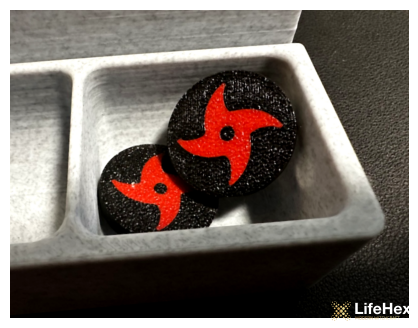 Fekete-piros shuriken ábrás token, 10 db