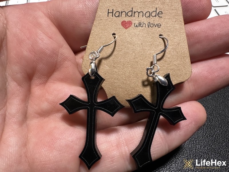 Egyszerű, gótikus vonalvezetésű fekete kereszt. A csomag tartalma 2 db fülbevaló (egy pár).