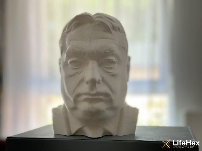 Orbán Viktor mint valóban hasznos segítő, WC-kefe tartó formájában, de tetszés szerinti tartalommal megtölthető a feje, akár chipstartóként vagy virágcserép helyett is remekül használható (kültéri használatra nem alkalmas!).