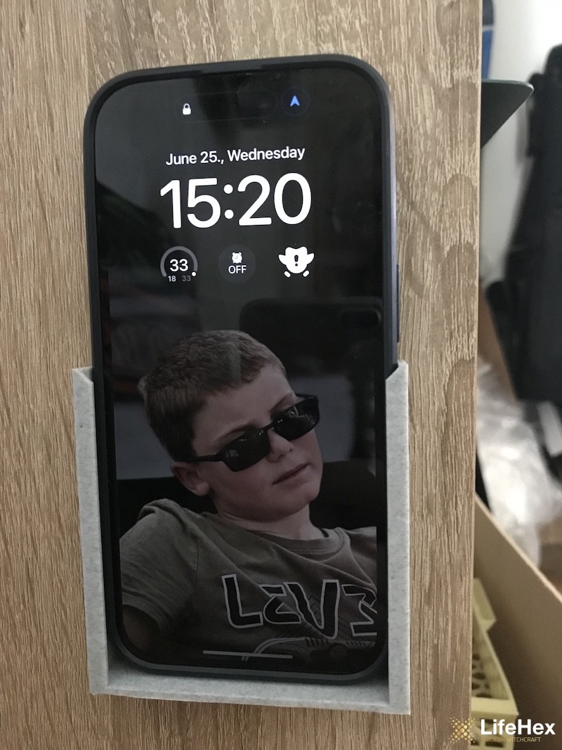 Egyszerű, de nagyon praktikus tartó az iPhone 14 Pro telefonodnak. A képernyőt szabadjon hagyja, így az látható, kezelhető marad. Csavarral vagy kétoldalú ragasztóval könnyen rögzíthető falra vagy akár a szekrény oldalára.
